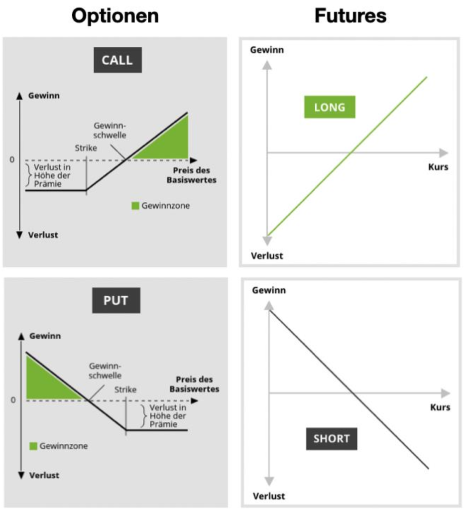 Zum Thema Optionen haben wir bereits einen ausführlichen Artikel veröffentlicht, den Sie hier finden. Der Artikel dürfte die Abgrenzung zwischen Futures und Optionen klarstellen.